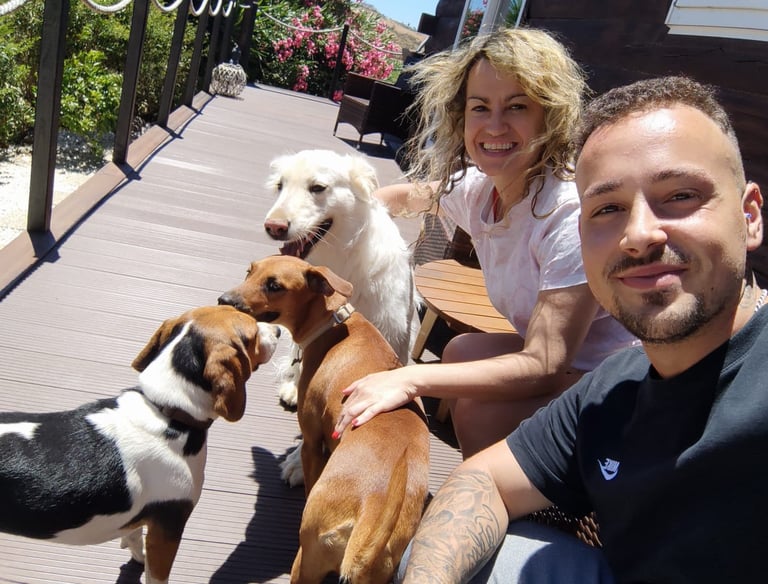 Somos una pareja unida por los animales, la naturaleza y el estudio del comportamiento, tanto humano como animal.